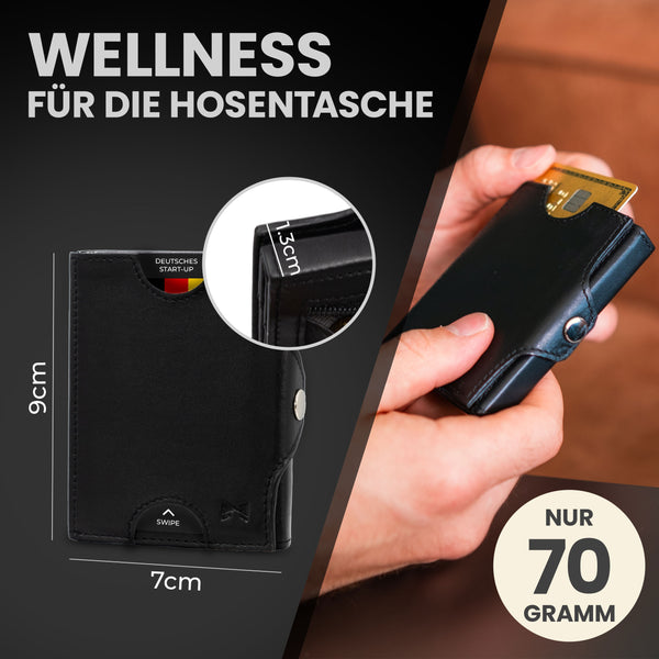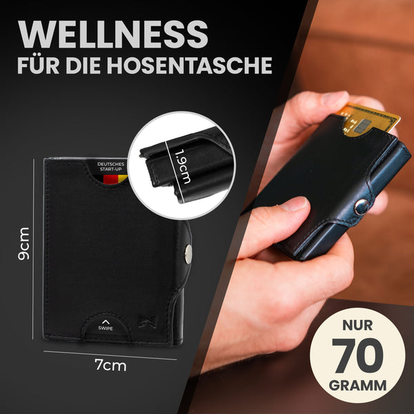 Der optimale Begleiter: Das Gentlemen’s Slim Wallet kombiniert zeitloses Design mit maximaler Funktion – ideal für Männer, die Stil und Alltagstauglichkeit schätzen.