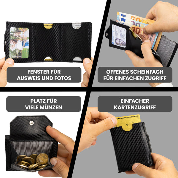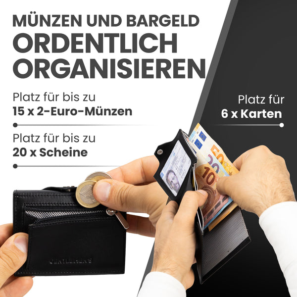 Perfekte Organisation: Platz für bis zu 6 Karten, Scheine und ein separates Münzfach – strukturiert, übersichtlich und immer griffbereit.