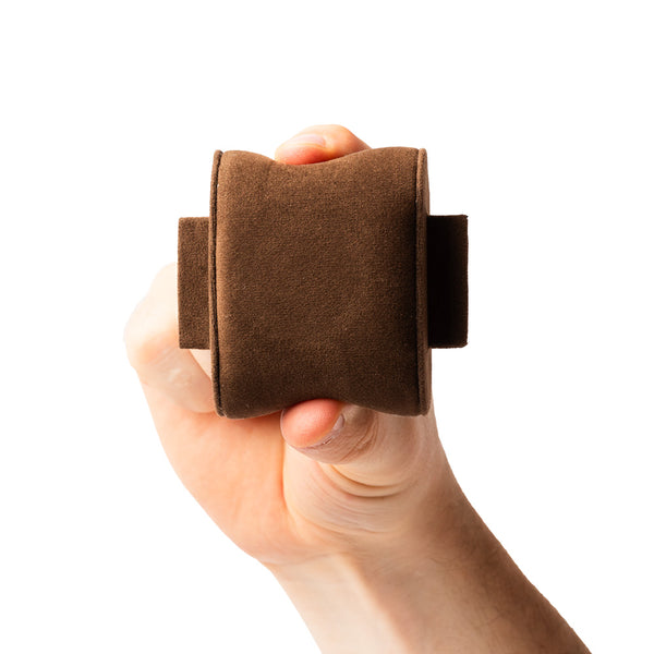 Flexibles Kissen für 16 bis 19+ cm Handgelenkumfang: Noch größere Uhren sitzen lockerer auf dem Kissen, sind aber gleichermaßen geschützt.